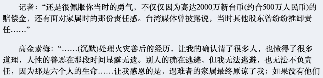 ▲ 说会负责到底的金素梅果真信守诺言,她拿出了2000万台币的积蓄赔偿给死伤者家属。