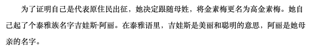 从此被叫做高金素梅(也被直接称为高金)的她开始了自己崭新的人生。