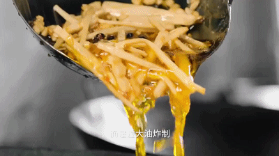 酸笋裹挟在滚油里爆炒,和豆豉、蒜蓉一起爆香…