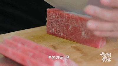 牛肉的每一片,都要切得方方正正,恨不得长宽高都要统一,烤出来的肉片才能均匀肥厚…