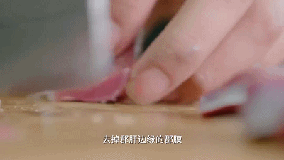 小郡肝,切去边缘的筋膜,只留下最嫩的肝心,爽滑弹嫩,保准不塞牙;