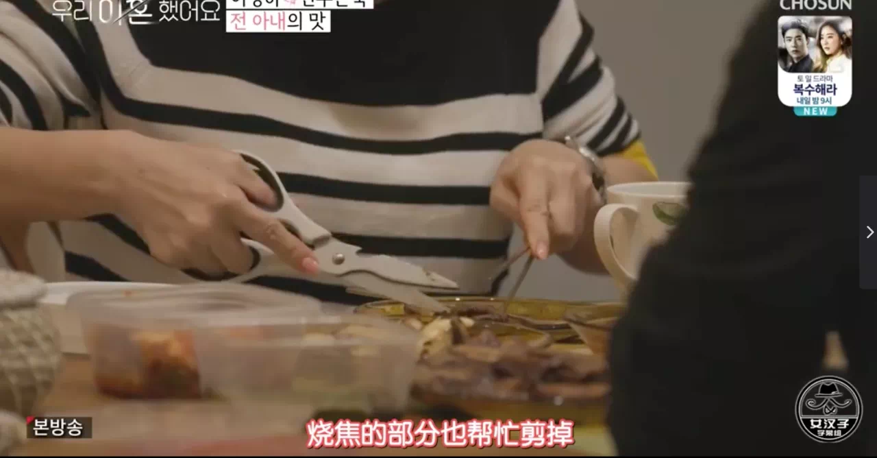 吃饭时总是盯着前夫爱吃什么、不爱吃什么,前夫的筷子动到哪里,她的心就跟到哪里,她甚至主动剪掉烤肉烤焦的部分,给前夫嫩肉,“烤焦的我吃”。