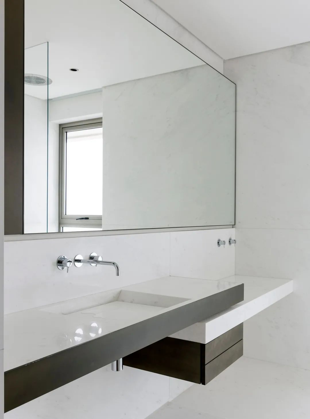 浴室与主卧仅一玻璃之隔,白色理石清空人们的思绪,并勾勒出远方大海的轮廓。