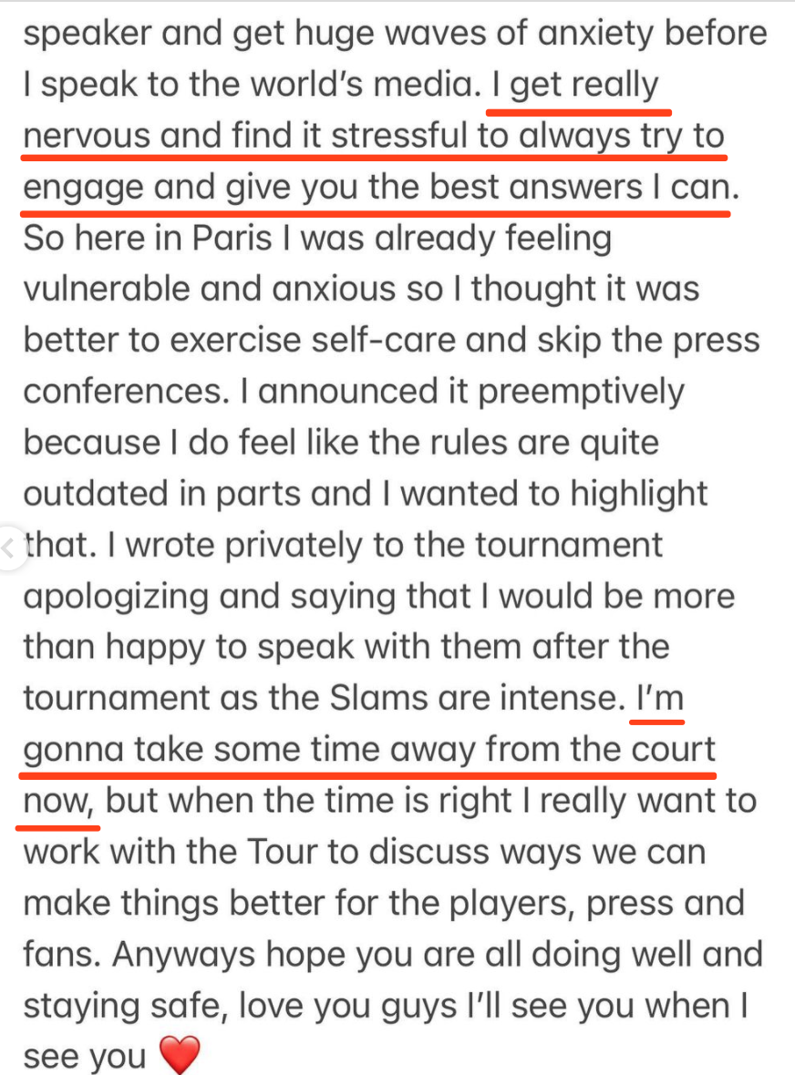 信不信由你,我生性内向,不惹人注目。我总是试图推动自己为我认为正确的事情发声,但这往往以极大的焦虑为代价。作为运动员心理健康的代言人或代言人,我感到很不舒服,因为这对我来说仍然很陌生,我没有所有的答案。我确实希望人们能够理解不正常也可以,谈论它也可以。有些人可以提供帮助,并且在任何隧道的尽头通常都会有光。