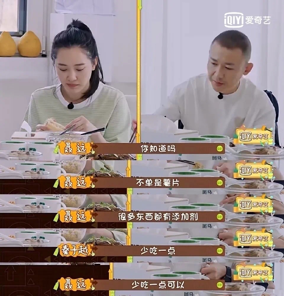 饭是早晨10点做好的,秦妈妈还细心地用罩子将每道菜都盖好,怕饭菜凉了口感不好。到12点,聂远还没有起床,秦子越接连叫了几次,他都不肯起。等到下午1点,秦爸爸的表情明显不悦,秦妈妈也热了好几回菜,大家都饿了。最后,聂远在下午2点起床,一家子终于算是吃上了这顿迟来的“早餐”。岳父没吃饭,说睡午觉去了,也可能是不太高兴。他自己却一点愧疚的表现都没有,还直呼岳父为“她姥爷”。吃完饭聂远抹抹嘴,说一句我去打球,丢下全家人和一桌子锅碗瓢盆就走了。聂远要求秦子越不能给女儿吃零食,还长篇大论地教育秦子越,“你知道吗,不单是薯片,很多东西里面都有添加剂。”结果看见女儿回家,马上放弃立场,拿出薯片给女儿吃,哄得女儿高高兴兴的,让自己这个做老爸的形象瞬间高大了起来,却把秦子越变成了女儿心目中的“坏人”。秦子越辅导女儿做题,聂远看不得女儿委屈,偷偷给女儿报答案,被秦子越发现,两个人发生了分歧,聂远居然说了一句,“女人何苦为难女人”……虽然是开玩笑,但这种明显的拆台行为,换到哪个老婆身上都会生气的吧,身处在两种不同的教育观念上,做女儿的也会无所适从。聂远的一系列表现让坐在观察室的李诞和董又霖都深有感触,就算是旁观者看见聂远的样子也会觉得害怕,别说秦子越了。