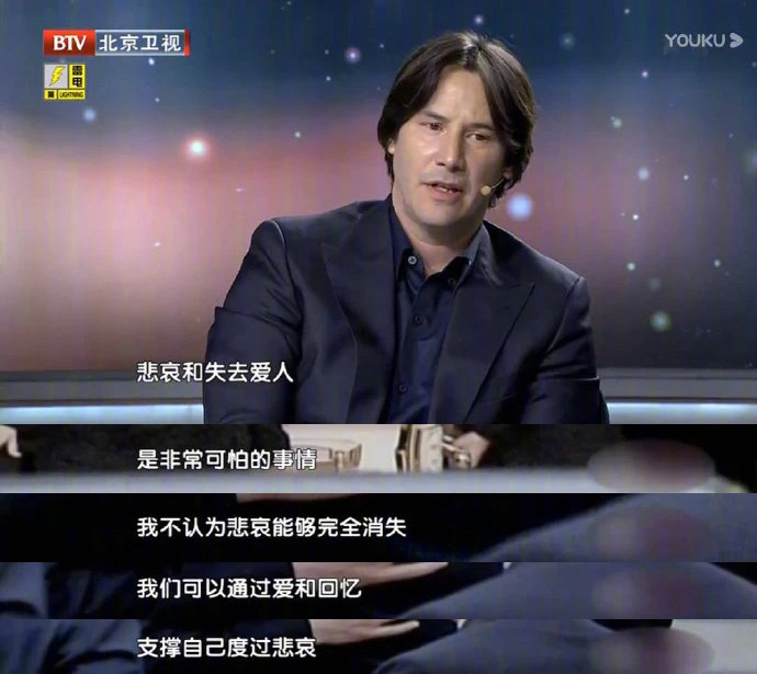 但其实基努对于人生中的悲伤,有着更为深刻的看法。就像他说自己是一个“通过完全的悲观主义来表现的乐观主义者”。
