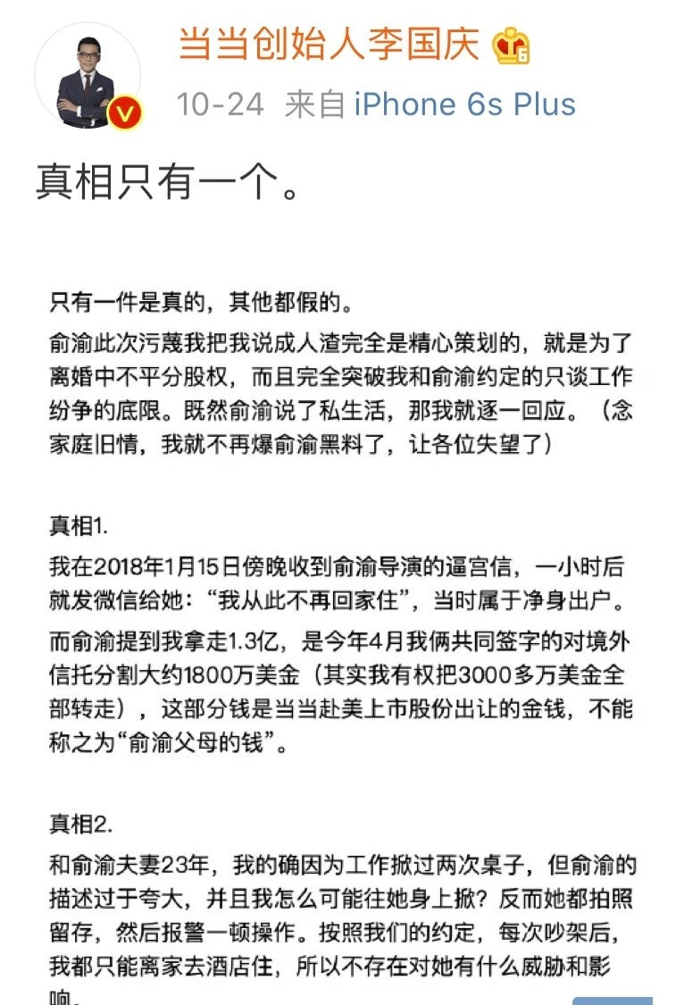 事实上,在10月23俞渝激情一撕之后,李国庆就发动了大反击。