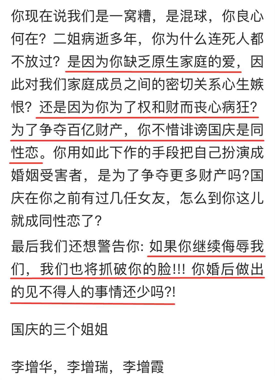 李国庆一方三个姐姐亲自下场,号称也要抓破俞渝的脸。
