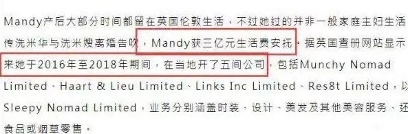 ▲ 自然Mandy这边也不能亏待,除了给生活费、子女抚养费,还在英国买豪宅、帮忙开公司。