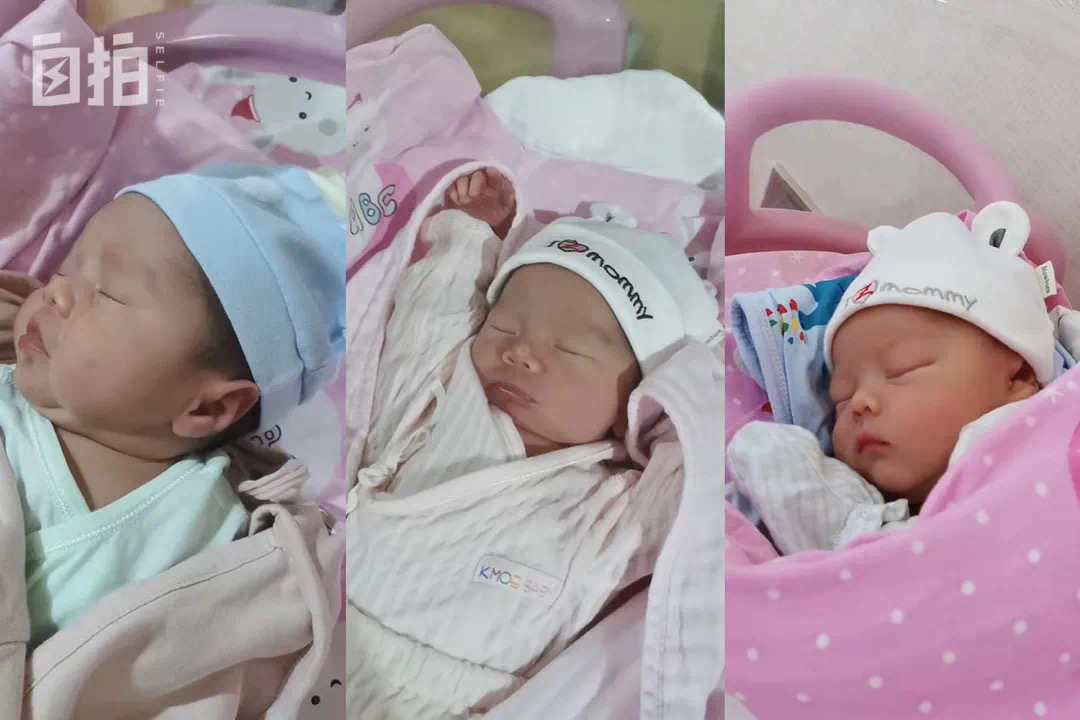 三胞胎刚出生时的照片,左至右依次是哥哥、妹妹和弟弟。