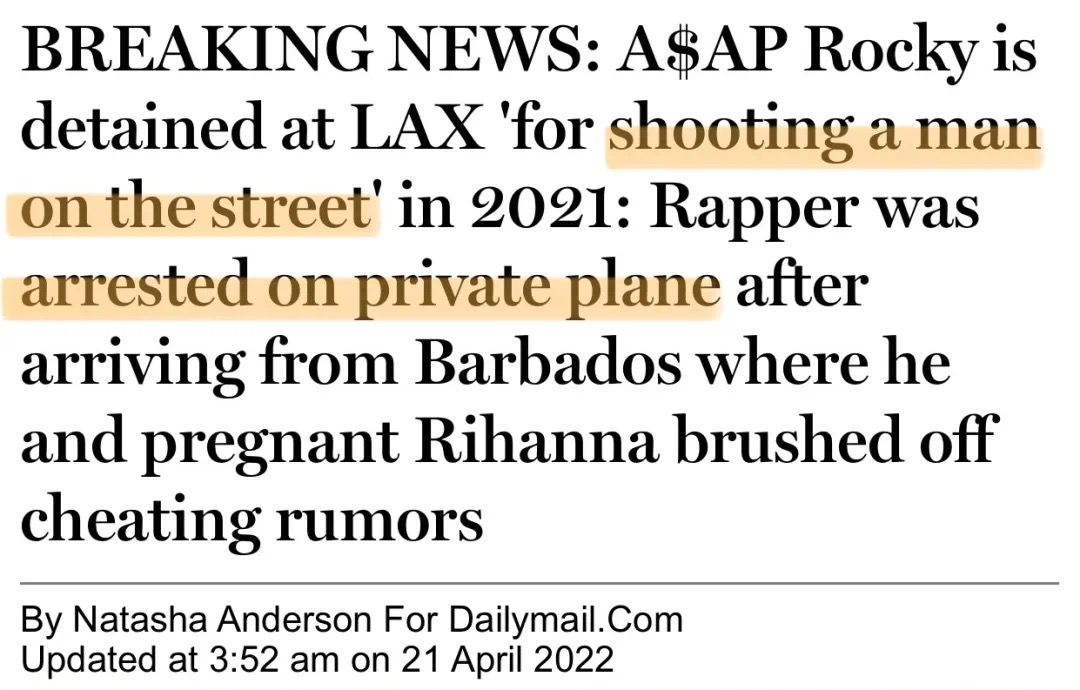 ▲ 另一张图,A$AP Rocky左手抱着Goyard包,右手拎着North Face联名Gucci Vault的限量行李袋。狗仔们火速跟进,想要在私下窥探一点“感情不合”的蛛丝马迹。但结果大失所望,两人看起来实在相当恩爱。▲ Rihanna被拍到穿上超性感的迷你连衣裙(牌子:Dundas,1450美金)在当地餐厅用餐,从手指到脚趾都透露着精致。▲ 还有她身着荧光短裙在海边闲逛(图右),就算和A$AP Rocky驻足路边摊买个椰子也不忘互相拥抱(图左)。谁也没料到,这般融洽和谐的氛围会在他们乘坐私人飞机返回洛杉矶时戛然而止。飞机落地的那一刻,A$AP Rocky被等在机场的警察们带走了,原因是他涉嫌在去年11月的一起枪击案中开枪,致人受伤。▲ 挺着大肚的Rihanna就在现场,无能力为。事后有消息称,她被吓到了哭个不停,恨不得立马飞回巴巴多斯。▲ 不止如此,媒体还拍到了警察全副武装上他家搜查。对不起,这一帧画面实在有点好笑,门里并没人,开门的警察却不知何故摔了个屁墩,原本严正以待的六个人,有五个的注意力都被成功带跑偏,真要开火岂不是损失惨重… ▲ 有钱好办事。当天下午A$AP Rocky交了55万美金,火速保释。 ▲ 而警方那边已经在他家找到了多把枪支,正在比对弹道是否跟去年的枪击案吻合。警方还将进行枪支背景调查,确认它们到底来自哪里,是否合法,是否存在被盗等问题。▲ 最新消息,有好有坏。好的是枪支弹道比对不吻合;坏的是,可能有监控视频拍到了他开枪的视频…23日晚,保释中的A$AP Rocky跟Rihanna被拍到一起外出用餐,至少证明了被捕事件没有影响感情。▲ 事后有消息人士称两人在饭桌上依旧表现亲昵,感情无恙。毕竟快生了,Rihanna的脚已经明显肿大了一个size……但或许是身处舆论漩涡中心,有必要刻意保持低调。媒体大众关心的baby shower,一会说因为A$AP Rocky被捕改期,一会又说其实已经悄悄进行了。▲ 据报道,他们在4月22日(A$AP Rocky释放第二天)举行了小型低调的baby shower,来宾被严格规定不允许拍照,所以没有任何照片流出。是直到有人在几天后晒出了伴手礼,印着两人儿时照片的T恤,媒体才得知了此消息。远在英国的一名女子突然向媒体爆料,去年12月,A$AP Rocky还在社交平台跟她暗通款曲,明明那时候Rihanna都已经怀孕好几个月了。