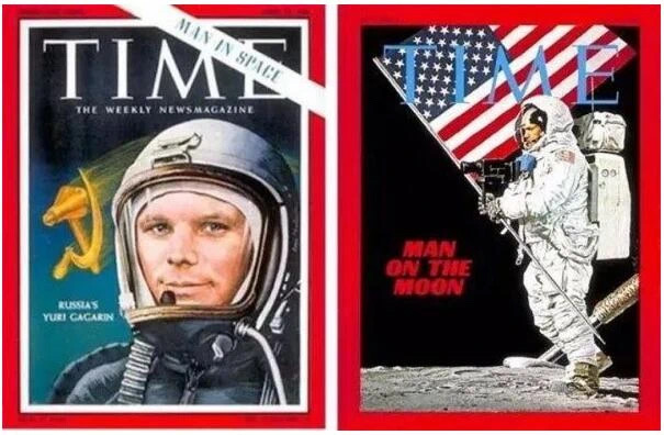 上图_ 美苏太空竞赛时,美苏出现在《时代周刊》上的相关封面画报
