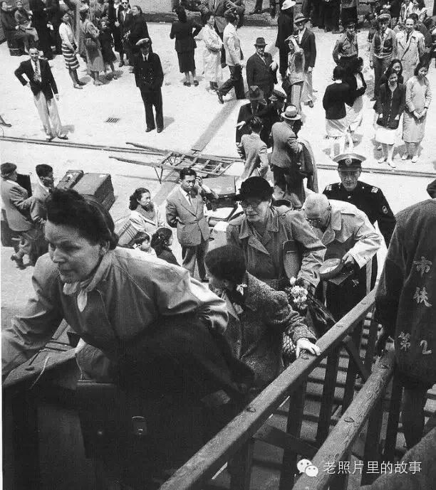 1949年5月,共军攻占南京后,外国人登上美国军舰USS President Wilson号撤离上海。