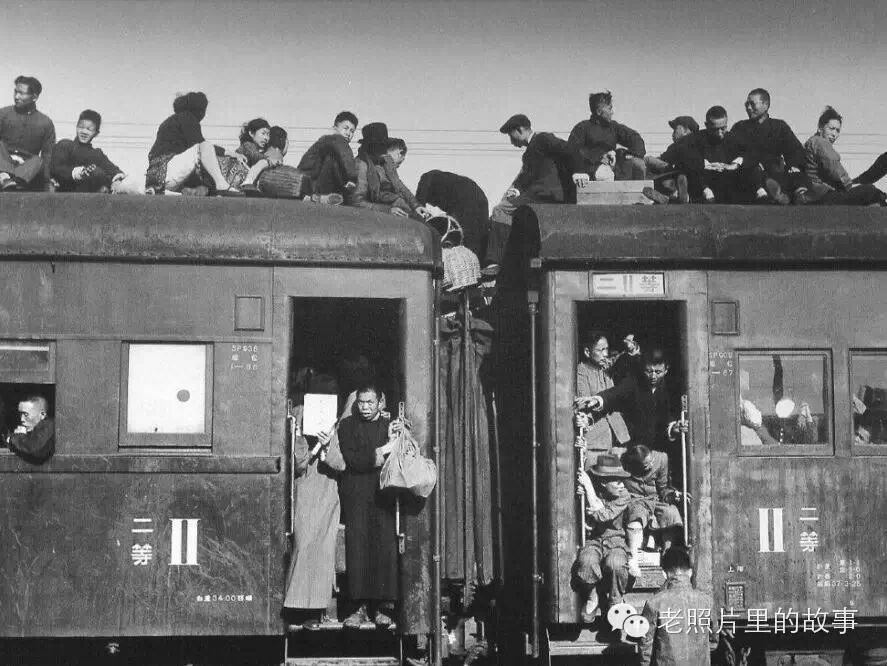 1949年3月,上海北站, 逃难者挤满了南下的列车。