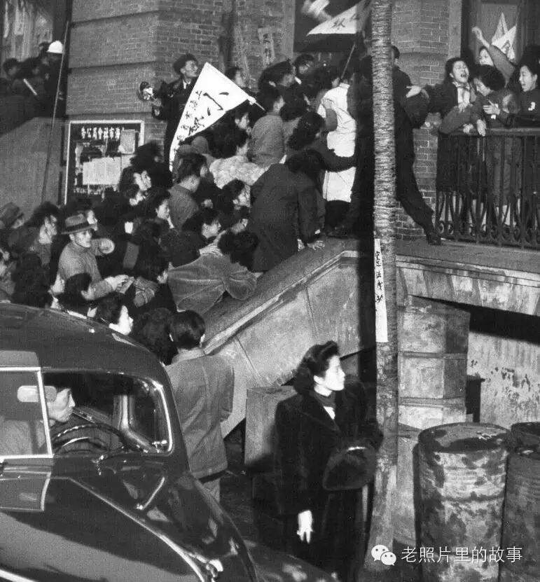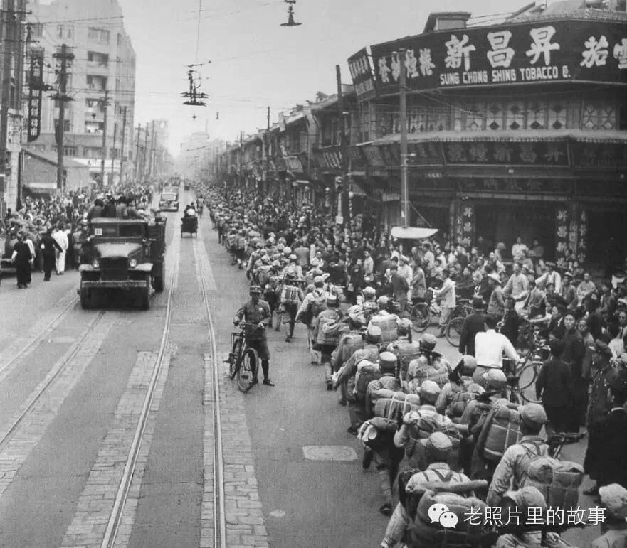 1949年5月,四川路上的国军“胜利”游行。 看来“战上海”里描述的国军战败后的庆祝游行还是有事实依据的。