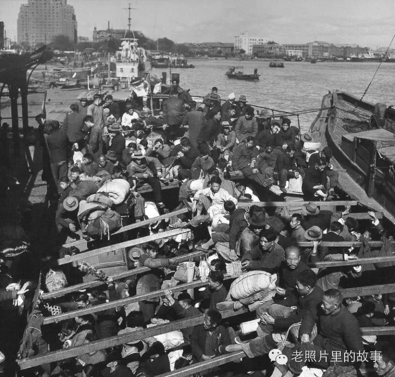 1949年5月,逃难者挤在一艘将驶向宁波的美国海军货船。