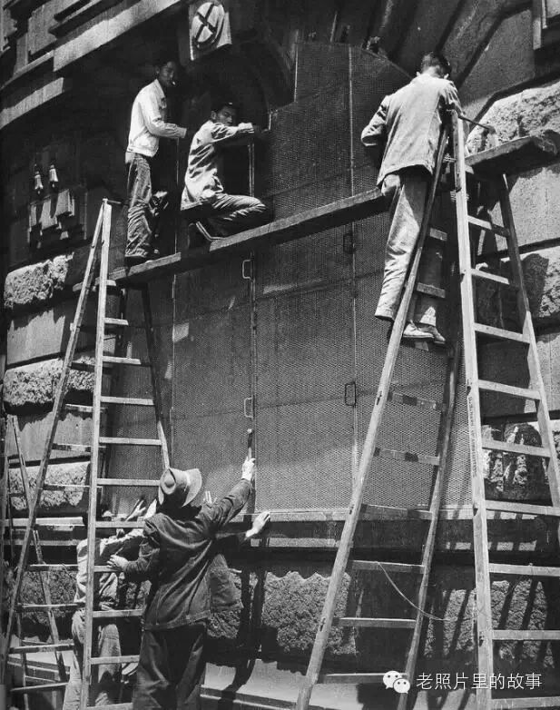 1949年5月,商家加固橱窗以防暴乱和抢劫。