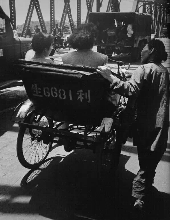 1948年5月,打瞌睡的三轮车夫,背景应是四川中路吧。