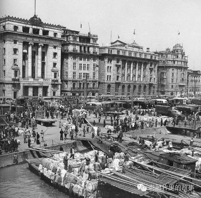 1948年由美国出资,联合国难民署向中国提供了价值2000万美元的棉花来帮助中国内地的难民。下面几张照片记录了这批棉花在外滩卸货时发生的事。据照片摄影者Jack Birns说,最后只有相当小的一部分棉花到了难民手中。大部分都被贪污掉了。这些以及以后几天将贴的反映底层民众生活的照片最后并没有在《生活》上发表。杂志编辑部认为这些照片会“成为农民和穷人接受共产党赤化的依据”。而这是强烈反共的杂志出版商Henry Luce不愿见到的。