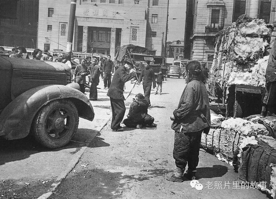 1948年3月,外滩,便衣警察棒打偷拿棉花的老太。