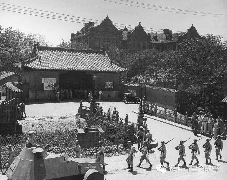 1948年6月,士兵与装甲车阻止交大学生参加游行。