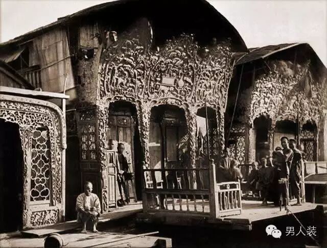 ▲1871年,广州花船。这种雕刻华丽装饰花哨的“花船”,实际上是水上青楼。