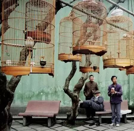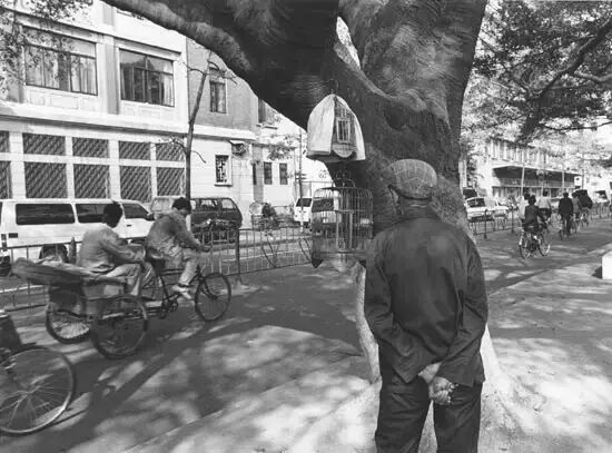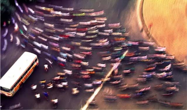△ 1994年,俯拍自行车经过的样子,采用慢速度拍照,每辆车拉出了一条长长的轨迹,形成一个特别的画面。