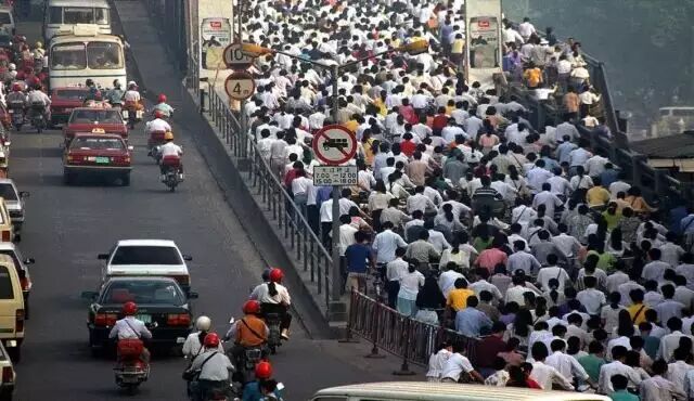 △ 1984年海珠桥汹涌的人潮,每天早上的上班时间曾经困扰了不少人。
