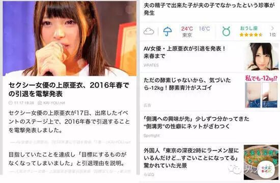 日本当地时间17日,在没有预示的情况下上原亚衣宣布引退,在小片界投下了一颗重磅炸弹,而日本最近的新闻基本全部被“上原亚衣引退事件”所覆盖,就连日本电视台也争相报道。