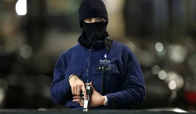 ▲当地时间2015年11月22日,比利时布鲁塞尔,警察和士兵持枪巡逻。CFP供图