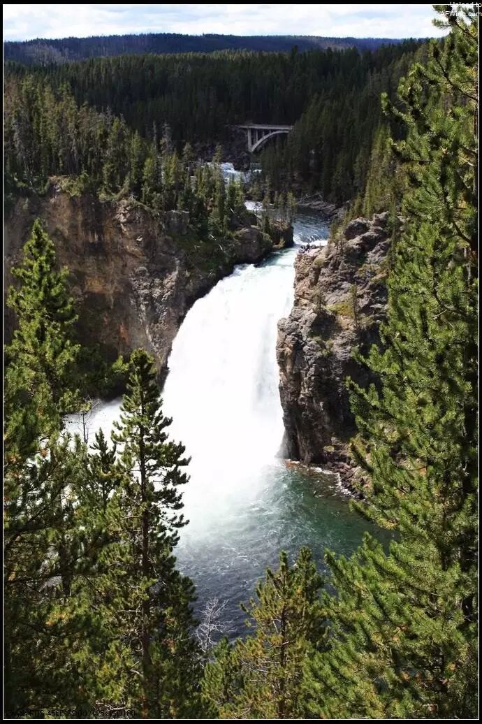 31 黄石公园的瀑布以及拱桥,真实中拱桥可是在黄石峡谷的“上瀑布”瀑布的上游