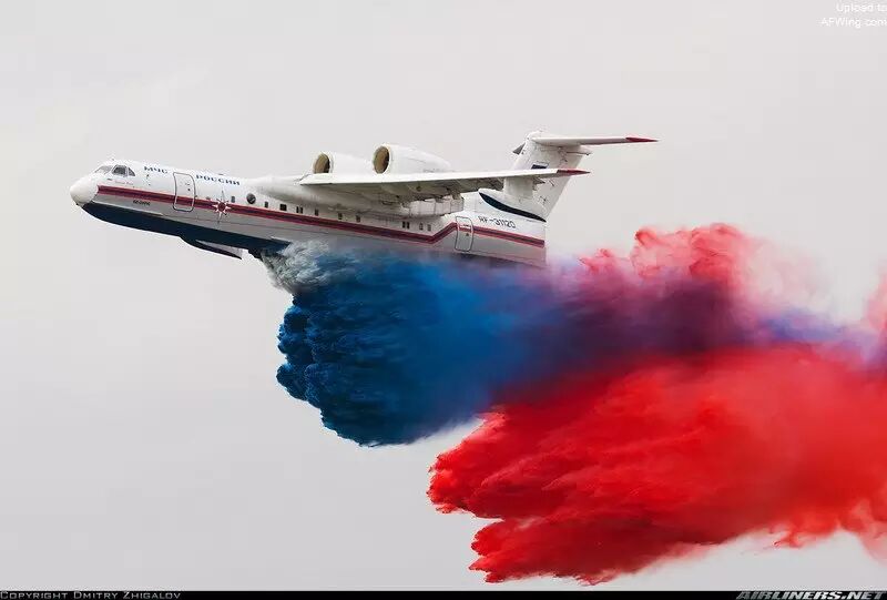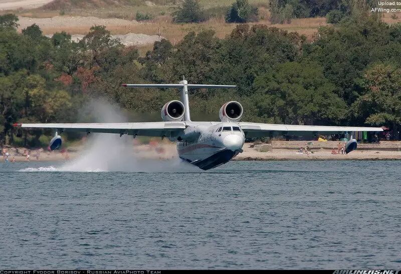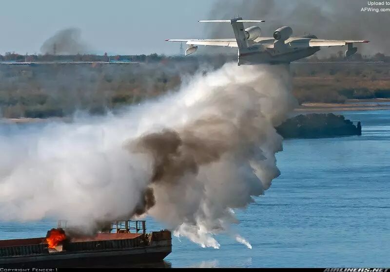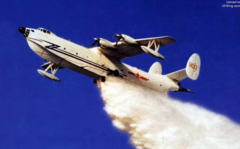 42 正在投水的俄罗斯别-200型水上飞机,注意四个投水门全部打开,最大投放量