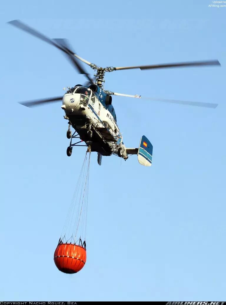 44 外挂吊桶飞行的卡-32,吊桶里已经装满了消防用水
