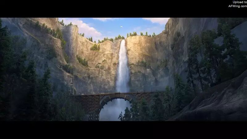 31 影片中以黄石公园瀑布为原型的瀑布以及拱桥,注意拱桥的桥拱是汽车钢板减震弹簧
