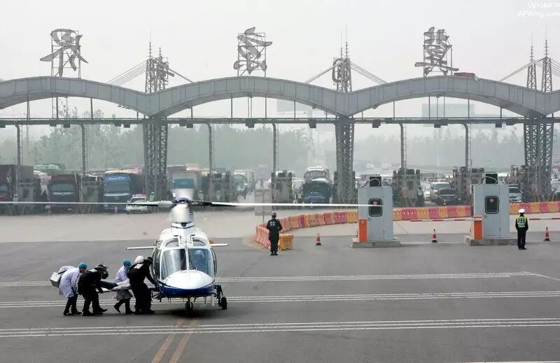 23 现实中,很多飞行器可以利用宽敞的地方实施着陆,这就是临时起降点,只要上报给军民航的相关管理部门并获得许可后就能使用了,这就是在高速路收费站实施的紧急救援任务,这地方明显就不是“机场”
