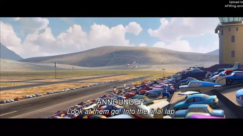 04 片中精彩展现了“雷诺飞行竞赛”,大家可以看到激烈竞争的机群、雷诺机场的观众席以及特色的交叉跑道,注意,所有的参赛机都是逆时针绕飞那些矗立在场地中的红白相间的地标