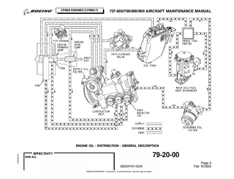 11 飞机维护手册中对于发动机滑油系统的描述,图中央最大的润滑组件上就安装有滑油供油滤(1个),回油磁堵探头(3个),磁堵一般都安装在回油管路上,以便于收集可能出现的异常材料,在磁堵之后就是回油滤(图右下角)这样两套油滤加三个磁堵足以保证发动机滑油系统在关键的工作区域是可靠的,而且能有效发现各种异常
