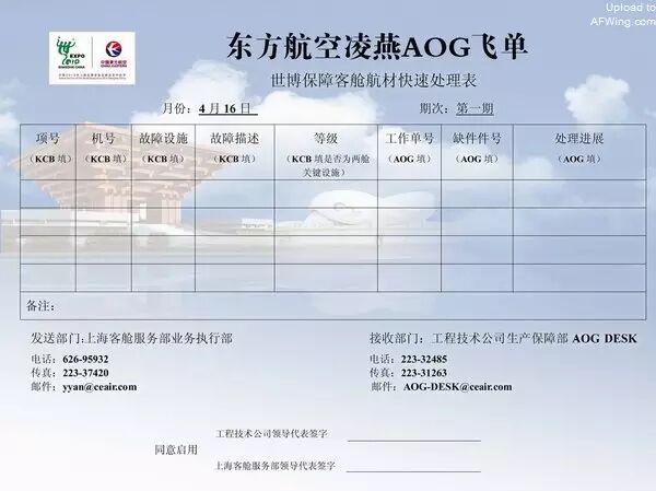 13 真实中的中国东方航空公司为保障世博会而专门设计的AOG航材处理表