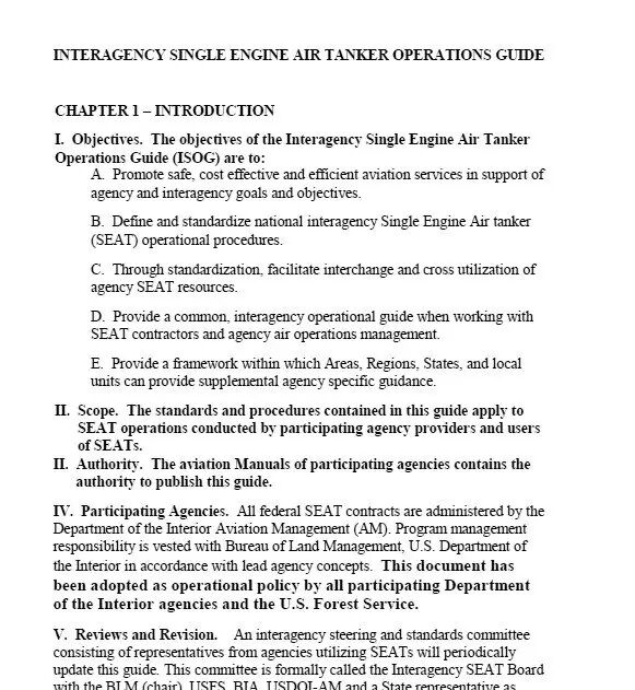大家在影片看到了一个名词SEAT(Single Engine Air Tanker,图22)这个是真实的,SEAT就是单发消防飞机的专有名词,这类航空器在现实中有专门的运行规范,航空森林消防在美国是由航空管理部门和国家野火协调组National Wildfire Coordinating Group (NWCG)等多个部门共同管理的,因此也就出版了跨部门的专用飞行器操作手册,大家都可以在网上查阅到这类机型的运行操作手册——里面包含了SEAT的简介,硬件和软件需求,在不同的环境下的运行操作方法,灭火方法,补给和卸载程序,应急训练程序等等,非常的详细。在影片中主角的新教练“刀锋游侠”对主角的训练过程几乎在这个手册里都能找到。