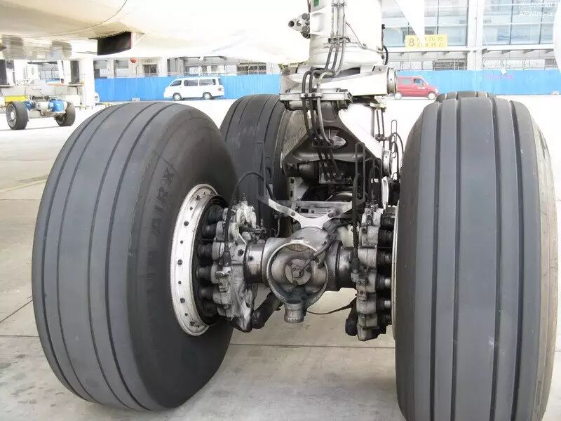 主角屡屡获奖,知名度越来越大,也开始给粉丝们签名了,他的签名是一个大大的D字,注意这个可爱的轮胎印,这种印痕很清楚的展现了现代航空轮胎的花纹(图07系),目前所有的航空轮胎都是这样的花纹,它的胎面只有纵向沟纹而没有类似汽车轮胎那种横向花纹,虽然看起来没有汽车轮胎那样花哨,但是这样却是为了保证飞机轮胎在足够安全的强度下具有优秀的排水性能,飞机轮胎是飞机上最常更换的消耗型航材,更换的标准之一就是这些沟槽被磨平,根据飞机机型和飞行强度的不同,飞机轮胎基本上就是100-150个飞行起落就要更换。因为飞机比汽车重很多,而且每次着陆接地时有着很强的冲击,这要求飞机轮胎的负荷能力必须比汽车轮胎高很多,而航空轮胎充气压力也很高,这要求航空轮胎有更多层数的帘线加强支撑材料,橡胶胎体也比汽车轮胎的厚,飞机轮胎运行环境较为恶劣,环境温度变化较大,地面工作可以到近百度的高温,而空中又是零下40-50度的低温;飞机着陆时速度高,还伴随有下降率,轮胎瞬间从0加速到250公里/小时的速度,瞬间拖胎的机会远大于汽车;而且飞机刹车能量很大,这就更要求轮胎又要具备具有良好的耐热耐冲击以及恶劣工况的适应性能。这都要求航空轮胎必须采用特殊的材料与工艺技术,其材料物理性能高、生热低,而且配置合理,如过单纯看生产工艺流程其实与普通汽车轮胎区别并不是很大,无非就是航空轮胎可以在磨损更换之后,只要按规定能够通过对胎体的检测,就可以重新覆盖表面橡胶层来实现轮胎重复的利用,而车用轮胎一般就不具备这样的能力了。