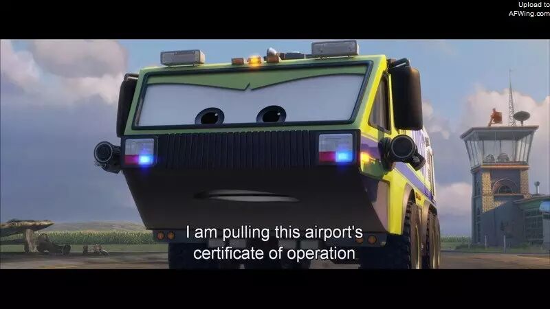 由于小镇机场的消防能力不足,按照规定小镇机场的使用许可证被吊销了,机场的关闭直接导致小镇居民的慌乱,因为很多参加玉米节的客人是要坐飞机前来的,机场不开放会损失大量的客流,其实我们能够看得出机场在整个航空运行中的关键作用,机场是整个航空运输的关键节点,飞机必须在机场起降、维修保养、装卸货物等等,因此,如果某处没有了机场就无从谈起空中的航线,没有航线,旅客就不会或者无法选择前往该地,协和超音速飞机技术上很成功,但是商业上很失败,因为其高噪音,高油耗,很多美国的机场不允许其降落,没有机场可落的尴尬就让协和飞机在更多的时候是在闲置而不是挣取更多的利润,这也是造成协和退役的原因之一,虽然本例和影片并不贴切,但是机场对飞机的开放与关闭,却可以影响一个机型能否被市场接纳,如此深远的影响的例子就足以让大家看出机场在航空中的关键作用了,因此在片中主角目标就出现了——为了机场能够达到重新开放的标准,本来自己也在等待全新的配件,有个事情干总比闲着强,所以他决定去接受消防飞机的训练,其实这个时候主角去当消防员的动机并不“纯净”(图21系)。