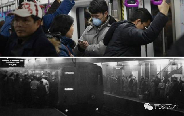 同样在拥挤的地铁下班回家的人们。