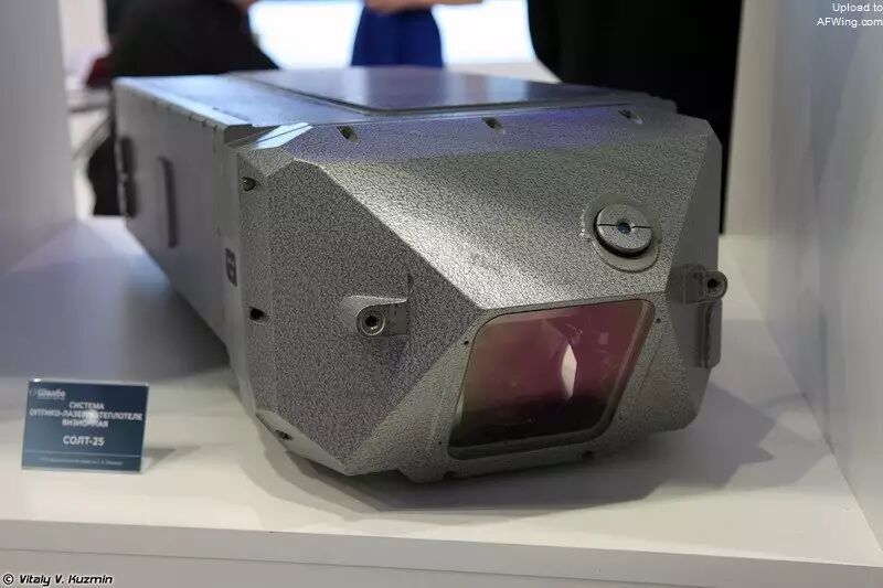 今年莫斯科航展室内展台展出了为PAK FA研制的传感器组件,不过唯一新鲜的东西是101KS-P小型红外成像传感器,编号中的“P”表示降落之意,也就是说这套系统能辅助T-50进行低空飞行和降落。从随101KS-P一起展出的一个整流罩来判断,这个传感器可能将内置在T-50翼下独木舟形武器舱前端。101KS-P是叶卡捷琳堡乌拉尔光学和机械厂(UOMZ)研制的101KS“环礁”光电套件的组成部分,该系统还包括前向101KS-V“空气”红外搜索和跟踪传感器(IRST)、101KS-O“防御”光电定位传感器、101KS-U紫外线导弹逼近告警传感器。此外,为PAK FA配套的101KS-N“大地”导航/瞄准吊舱正在 研发中。T-50原型机安装的101KS传感器种类和位置各不相同,目前尚不清楚生产型到底是什么标准。