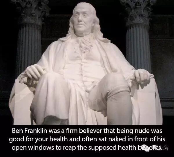 9.富兰克林坚信“果体”对健康有益,并且时常光着身子坐在敞开的窗户前,来追求他所谓的健康。