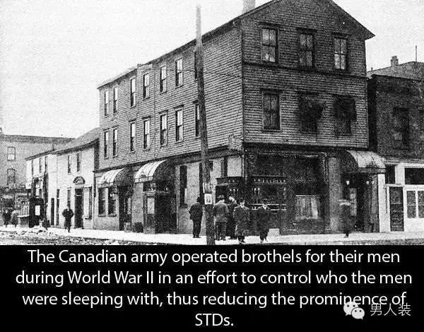 8.二战期间,加拿大军队自行经营ji院来控制男人的啪伴侣数量,以防止啪病在军队中蔓延。