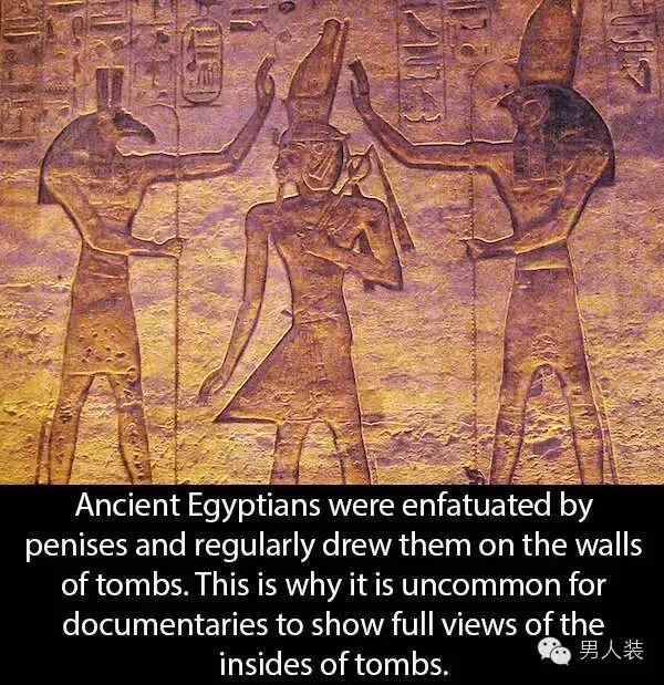 16.古埃及人对小丁丁特别着迷,时常会将它们画在墓穴的墙上,这或许是纪录片为何不会拍摄下墓穴内部完整画面的原因。