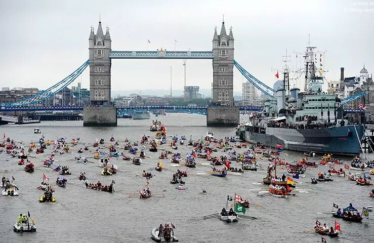 2013年伊丽莎白二世女王加冕60周年的时候,只有在泰晤士河上与民同乐了,唯一和舰队沾一点边的贝尔法斯特号是二战时代的巡洋舰,现在是博物馆