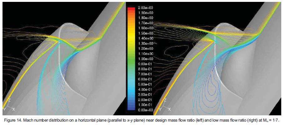 战术飞机的进气口设计一直是设计难点。一架战斗机的进气口必须在很宽的速度、高度、以及机动条件范围内都能向发动机提供高品质气流,同时还能满足发动机从怠速到最大军推或加力状态下对气流的需求。进气口在设计上还必须考虑因飞机布局带来的限制,如前起落架、武器舱、设备检修面板和前机身外形。进气口设计还必须满足阻力最小、重量最轻、成本最低、推进性能最高要求,对隐身战斗机来说,进气口还必须满足严格的低可探测性要求。