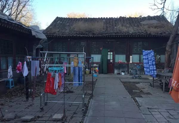 主殿后有后罩房,一溜房间应该是过去地位更低的做杂役的太监们居住的地方。罩房是我国建筑的一种形式,是指院落后和正房平行的一排房子,一般都是住着女眷,因为比较隐蔽,有钱人家住着女佣下人等。后罩房再往后是最后的院落,有抱厦三间。在这里,我看到了一幅生动鲜活的生活画面,显然房间里正住着热爱生活的人们,有红红绿绿的家具杂物,外面挂着各色衣物。有女人挽着头发袖口高卷,出入着忙碌家务。