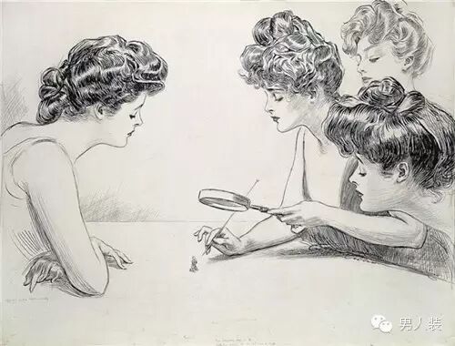 作为《生活》杂志的插画师,吉布森(Charles Dana Gibson)的作品中充满了丰乳肥臀的女性形象,一头乌黑的发和饱满丰润的嘴唇,据说这样的创作灵感来源于吉布森的老婆和她家里的女人。这些杂志封面作品暴风雪般席卷了时尚界,里面的女性形象也风靡全美成为全民偶像。